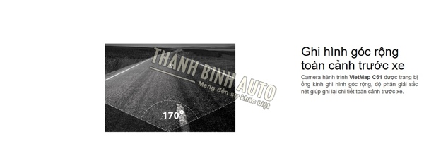 Camera hành trình VietMap C61 ghi hình với độ phân giải 4K, trang bị chip xử lý hình ảnh cao cấp ghi hình cực rõ ban ngày, ban đêm, ghi hình với thông tin tọa độ, bản đồ, tốc độ. Ngoài ra C61 còn có tính năng độc đáo cảnh báo thông tin giao thông bằng giọng nói mà không loại camera hành trình nào khác trên thị trường có được (Cảnh báo biển báo tốc độ, báo cấm vượt, khu dân cư....)