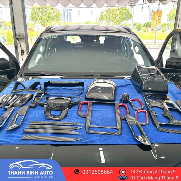 Gói Full ốp nội thất Carbon cho Everest 2025    B IẾN HÓA NỘI THẤT FORD EVEREST 2025 - ĐẲNG CẤP & THỂ THAO HƠN VỚI GÓI ỐP FULL CARBON CAO CẤP   GÓI NÂNG CẤP BAO GỒM:  Ốp viền taplo  Ốp cần số  Ốp viền màn hình giải trí  Ốp tay nắm cửa trong  Ốp điều khiển cần số  Ốp viền núm điều hòa, cửa gió  Ốp bệ tỳ tay & nhiều chi tiết nhỏ khác...  Lắp đặt chuẩn form Everest 2025 – không khoan cắt, giữ nguyên zin, tháo lắp dễ dàng!