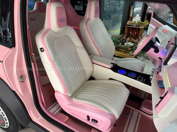 Bọc ghế da nappa cao cấp - đục lỗ vân CNC tinh tế Thêu logo cá nhân hoá từng vị trí ngồi theo nhu cầu chị chủ xe Bệ tỳ tay mẫu mer sang trọng được bọc lại theo tone màu da chủ đạo Sàn da nappa phủ kín xe - kết hợp thảm rối cao su may theo form xe vừa sạch và sang trọng Sơn lại toàn bộ nội thất nhưa đen thành tone màu Hồng - trắng xinh iuuu Khâu da volang nappa 2 màu theo kiểu Bently kết hợp dán da luôn nắp còi Led nội thất ambient light 22 chi tiết đổi màu qua app viền led thanh mảnh sang trọng SYN bộ chuyển android sử dụng song song 2 hệ điều hành Android - Vinfast trực tiếp trên màn zin youtube , Google map ,nexflix tải app trực tiếp qua CH play Tích hợp camera de đánh theo góc lái / cam hành trình / cập lề thao tác cảm ứng dễ dàng trên màn zin Vietmap live cảnh báo giao thông và dẫn đường bằng giọng nói bản quyền theo xe Cuối cùng món tiện ích ko thể thiếu là bộ ghế chỉnh điện tài - phụ lắp zin theo xe Ghế tài chỉnh điện 6 hướng ( Nâng - hạ/ tiến - lùi - Ngã lưng / gập lưng) Ghế phụ điều chỉnh 4 hướng kết hợp nhớ ghế 1 chạm nhanh trong 3s