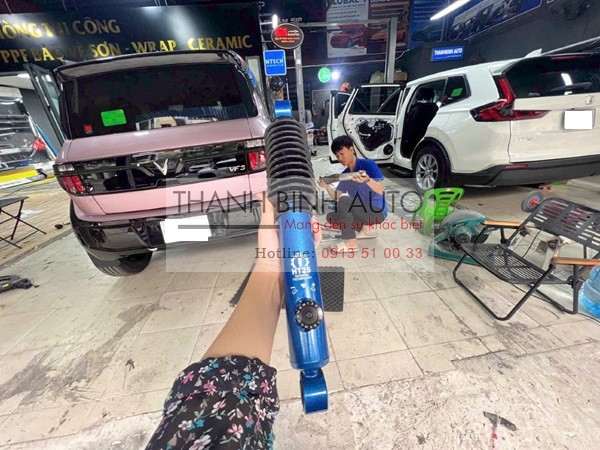 Ngoại hình bắt mắt: Màu sắc đặc trưng của phuộc độ (thường là màu vàng hoặc cam) giúp gầm xe VF3 trông khỏe khoắn và "xịn" hơn rất nhiều.