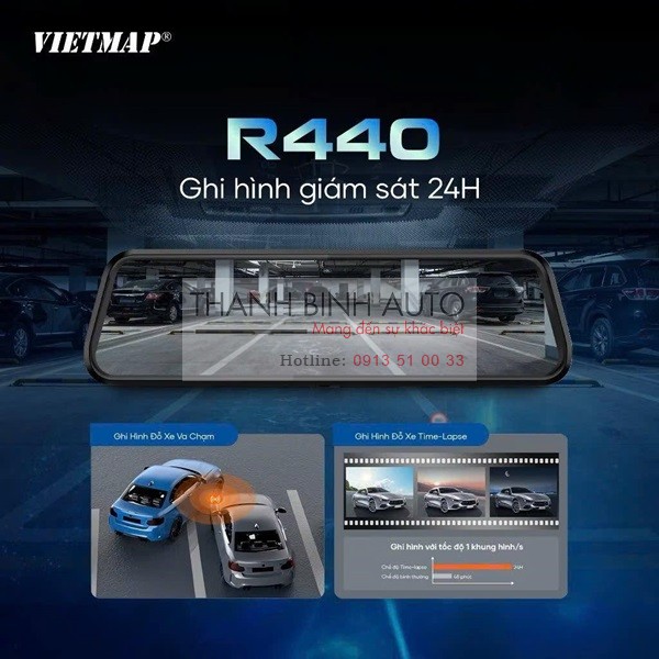 Vietmap R440 là mẫu camera hành trình dạng gương chiếu hậu thế hệ mới (ra mắt khoảng đầu năm 2025), được đánh giá rất cao nhờ sự kết hợp giữa thiết kế thẩm mỹ và công nghệ ghi hình 4K hiện đại.